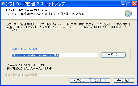 ライセンスを確認してから同意するを押すと、次にインストール先の確認が出てきます。