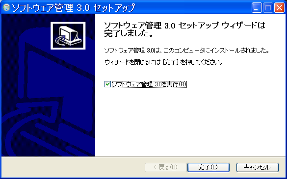 完了をクリックすると、ソフトウェア管理が起動します。