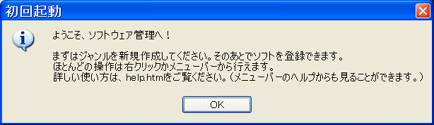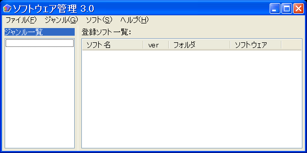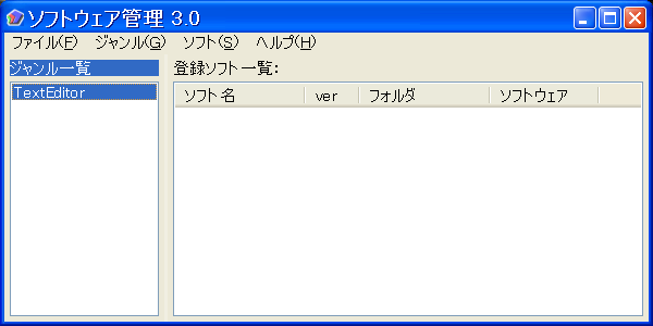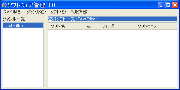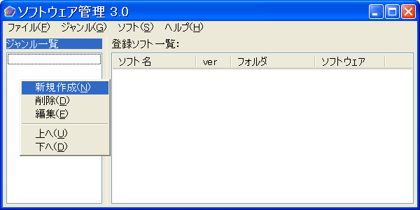 これがソフトウェア管理の基本となる画面です。まずはジャンルをつくりましょう。左のジャンル一覧を右クリックしてください。