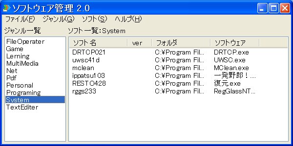 ソフトウェア管理 2.0 が完成しました。まだヘルプファイルなどが未完成なので公開できませんが、実行ファイルは公開可能な状態です。春休み中に完成させるという目標を掲げてプログラミングしていましたが、なんとか達成にこぎつけた形です。
